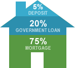 The government will lend you up to 20% (40% in London) of the cost of a brand new home, meaning you only need a 5% cash deposit and a 75% mortgage.